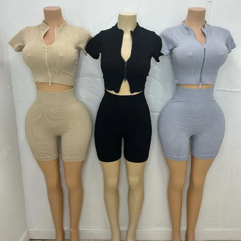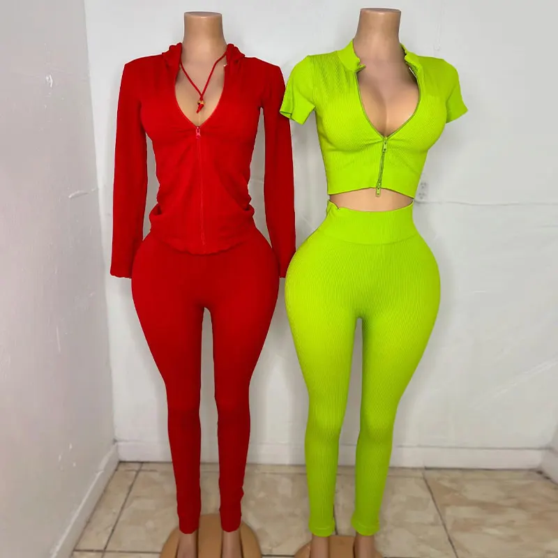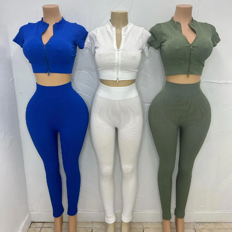 Huili Manufacturer Oem High Quality Women's Sports Activewear Gym Two Piece Set Women Clothing 2025 Workout Leggings Ribbed Sets